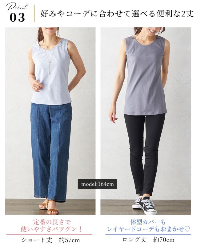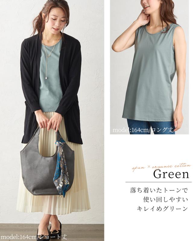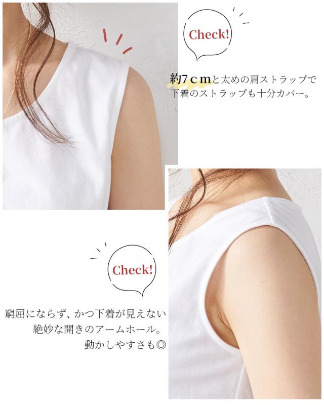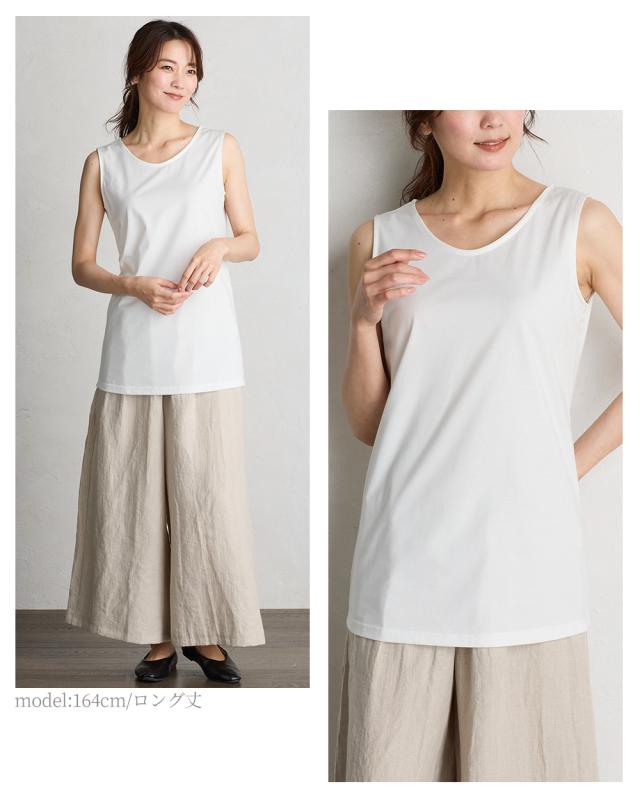 タンクトップ レディース 大きいサイズ インナー ロング ブラ紐隠し チラ見え防止 ブラ紐隠す 接触冷感 コットン 綿 日本製 オーガニックコットン