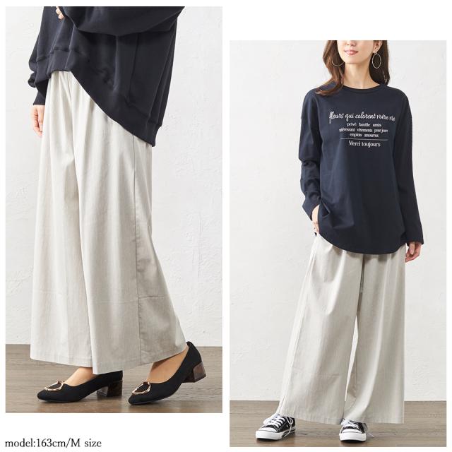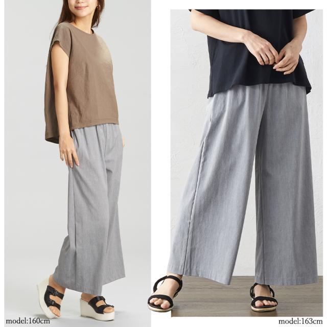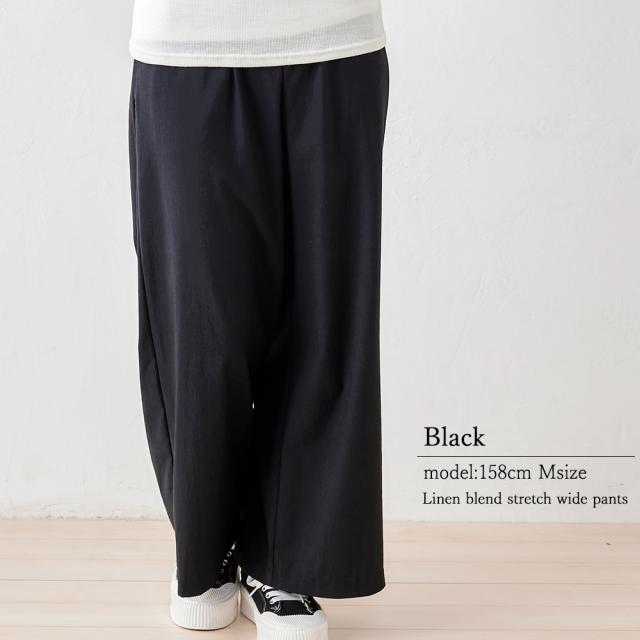 日本製 リネン 麻混 ワイドパンツ チクチクしない 軽い ベタベタしない ストレッチ 涼しい きれいめ レディース パンツ ボトムス 麻 楽ちん 大人可愛い レディース シンプル ウェストゴム 30代 40代 50代 60代 ファッション 【着ご試対象】