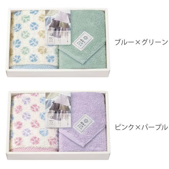 ![]() ギフトセット フェイスタオル・ハンドタオル:各1枚 | ![]() ギフトセット フェイスタオル2枚 | ![]() ギフトセット フェイスタオル3枚 |