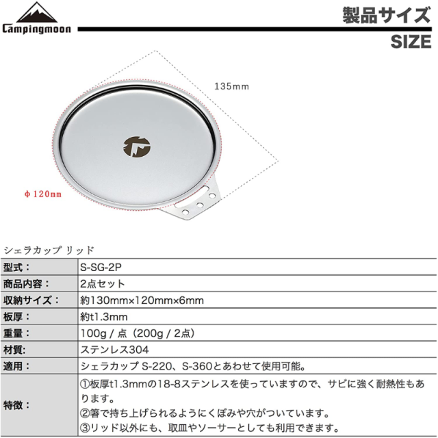 キャンピングムーン(CAMPING MOON) シェラカップリッド t1mm ステンレス304板材 φ12cm 2枚セット S-SG-2P