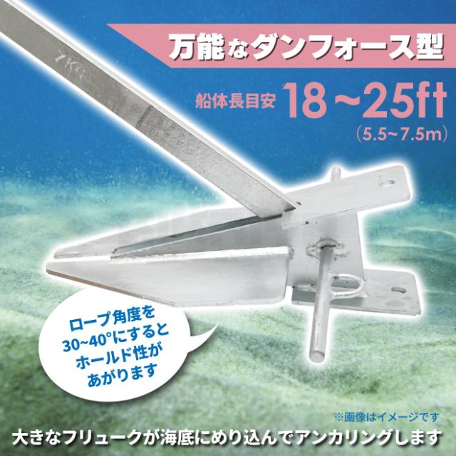 アンカー 7kg ダンフォース型 錨 碇 いかり 船体長目安 18〜25ft 5.5〜7.5m フリューク ボート ヨット プレジャー艇 小型船舶 砂 泥 砂利 KIKAIYA