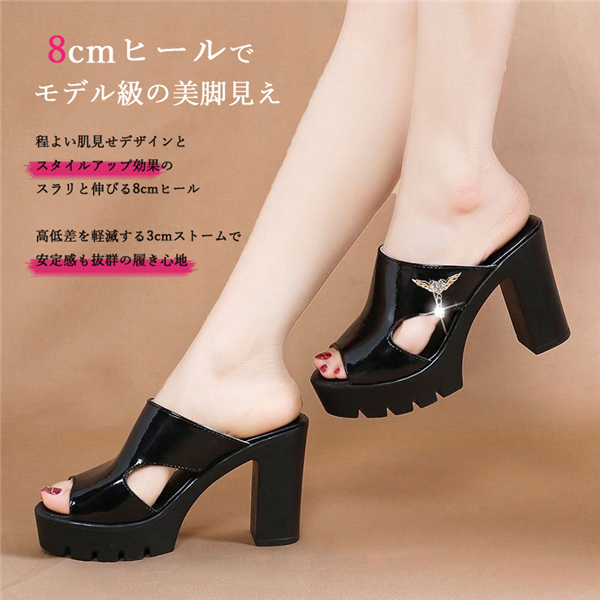 サンダル レディース ミュール ヒール 8センチヒール サンダル ローヒール 太ヒール レディース 痛くない クッション スキニーヒール チャンキーヒール スムース ストラップ サンダル オフィス スリッパ 歩きやすい シンプル ゆったり