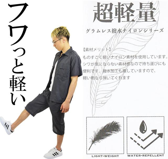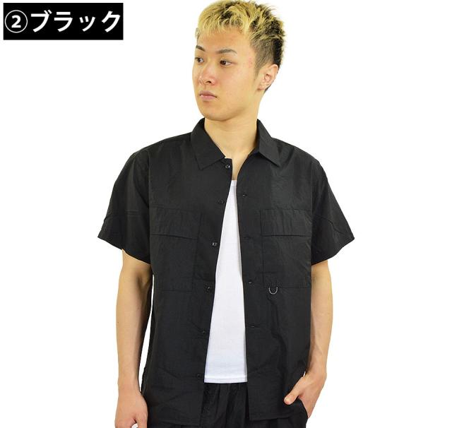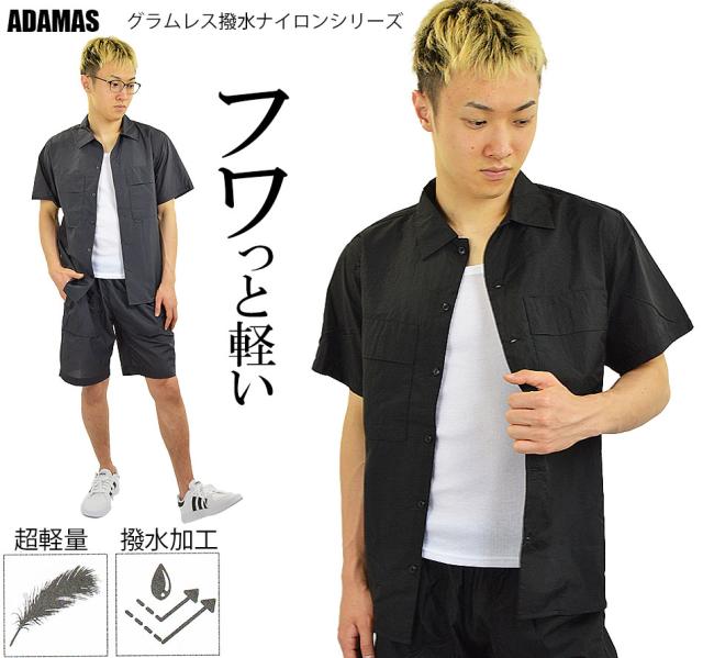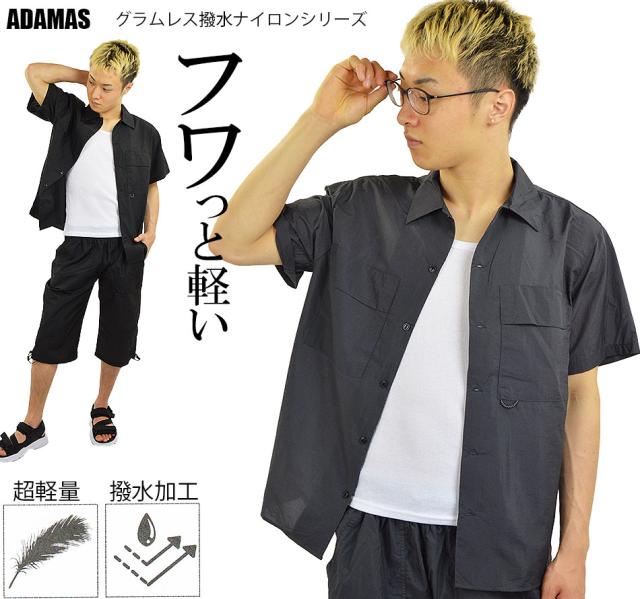 ふわっと軽い 撥水 ナイロン半袖シャツ メンズ ポケット付き リラックスウェア 軽量 薄手 黒シャツ 涼しい 部屋着 ルームウェア アウトドア キャンプ スポーツ ゴルフ ナイロンシャツ カジュアルシャツ 半袖 無地シャツ コンパクト 夏 カジュアル メール便 送料無料 夏新作