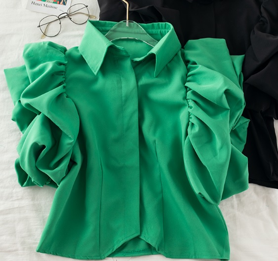 トップス シャツ ブラウス おしゃれ シンプル ゆったり 白 黒 グリーン シフォン 無地 襟付き 半袖 バルーン袖 春 夏 フェミニン 大人可愛い 10代 20代 30代 お出かけ デート お呼ばれ 通勤 仕事 オフィス OL 上品 トレンド 人気