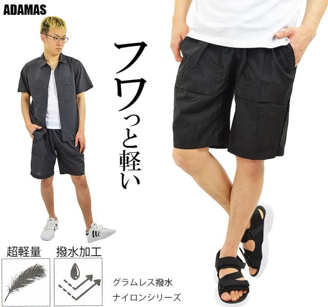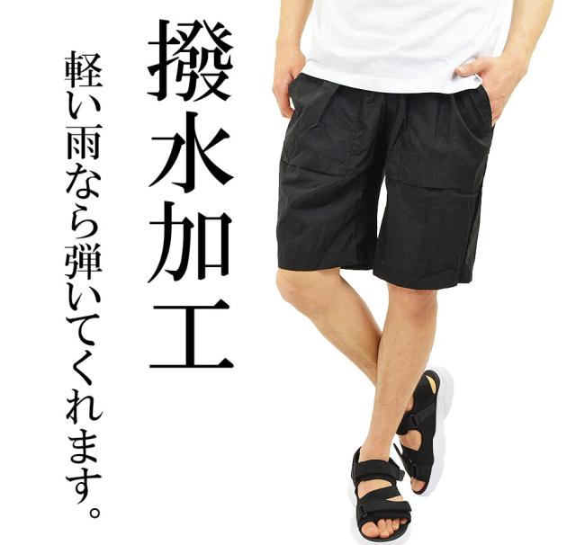 ふわっと軽い 撥水 ナイロン ショートパンツ メンズ ハーフパンツ 膝上 ウエストゴム リラックスパンツ 軽量 薄手 涼しい 部屋着 ルームウェア リラックスウェア アウトドア キャンプ スポーツ ゴルフ ナイロンパンツ 夏用 ズボン コンパクト 夏 メール便 送料無料 夏新作