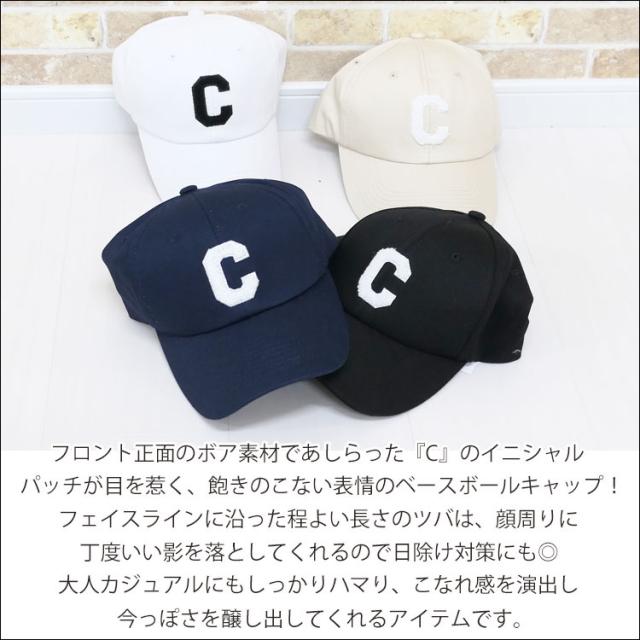 ・ボア素材であしらったCのイニシャルが目を惹くブランド風キャップ♪