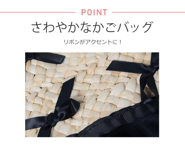 シンプルなかごバッグにリボンがデコレーションされたかわいいバッグ。