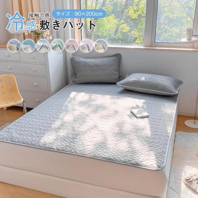敷きパッド クール敷きパッド ひんやり敷きパッド ひんやり 接触冷感 冷感寝具 涼感寝具 夏用寝具 洗える 枕カバー1枚 2点セット シングル 90×200cm