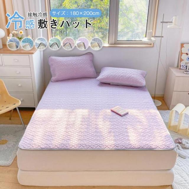 敷きパッド クール敷きパッド ひんやり敷きパッド ひんやり 接触冷感 冷感寝具 涼感寝具 夏用寝具 洗える 枕カバー1枚 2点セット シングル 180×200cm
