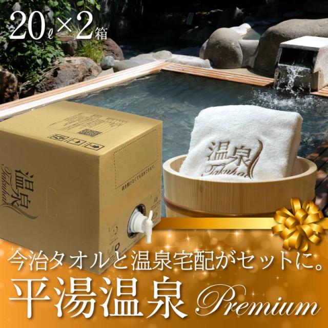 【温泉宅配プレミアム】【奥飛騨温泉郷 平湯温泉 ひらゆの森20L×2 最高級今治タオル付】炭酸水素塩・塩化物泉 きりきず、末梢循環障害、冷え性、皮膚乾燥症、うつ状態