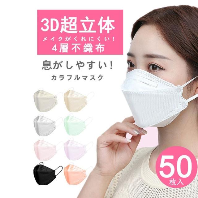 マスク 不織布 カラー kf94マスク 韓国 マスク 血色マスク 50枚入り 柳葉型 韓国マスク 4層構造 3D立体構造 口紅がつかない ウイルス対策 送料無料 セール
