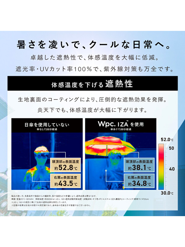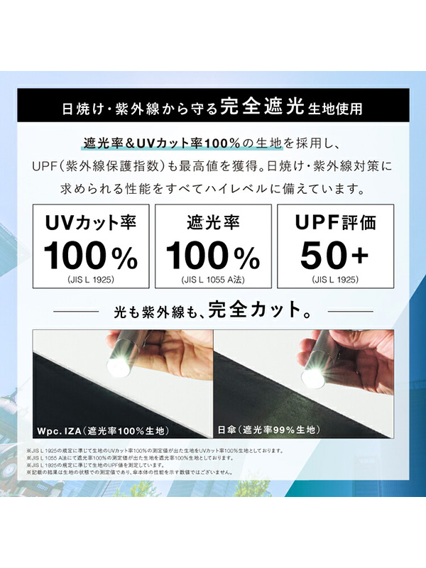Wpc IZA 日傘 折りたたみ傘 晴雨兼用 完全遮光 完全UVカット UVカット 遮光率 100% UPF+50 遮熱効果 Type Automatic & Safe 安全自動開閉 撥水加工 ZA021