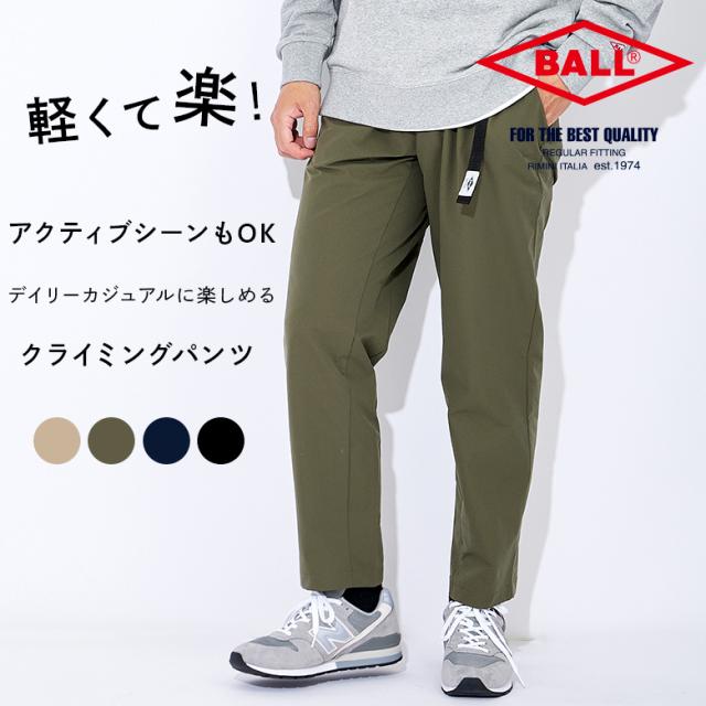 メンズ クライミングパンツ ストレッチ シンプル カジュアル アウトドア 春 夏 秋 ウェビングベルト ロゴ 無地 伸縮 らくちん BALL 32385