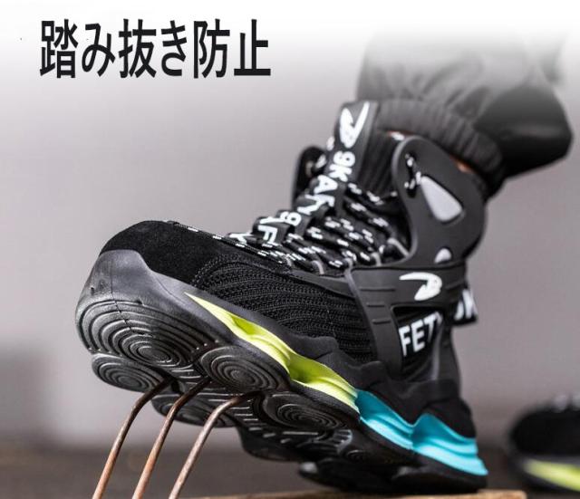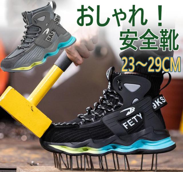安全靴 おしゃれ ハイカット メンズ レディース スニーカー 踏み抜き防止 作業靴 通気 大きい 軽い 夏 滑りにくい 軽量 つま先保護 23cm-29cm