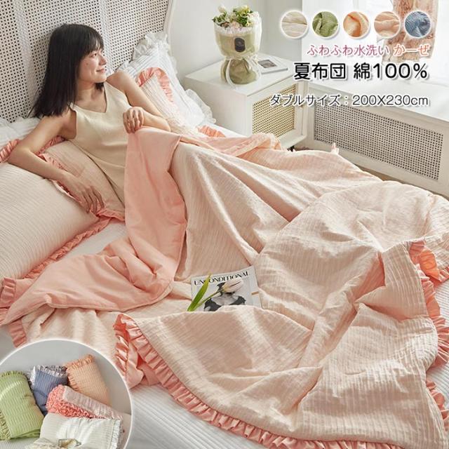 フリル付き肌掛け布団 夏布団 夏ふとん 肌掛け布団 シングル 夏布団 肌布団 かけふとん 冷房対策 洗える 春夏秋用 おしゃれ 防ダニ 抗菌防臭 200×230cm