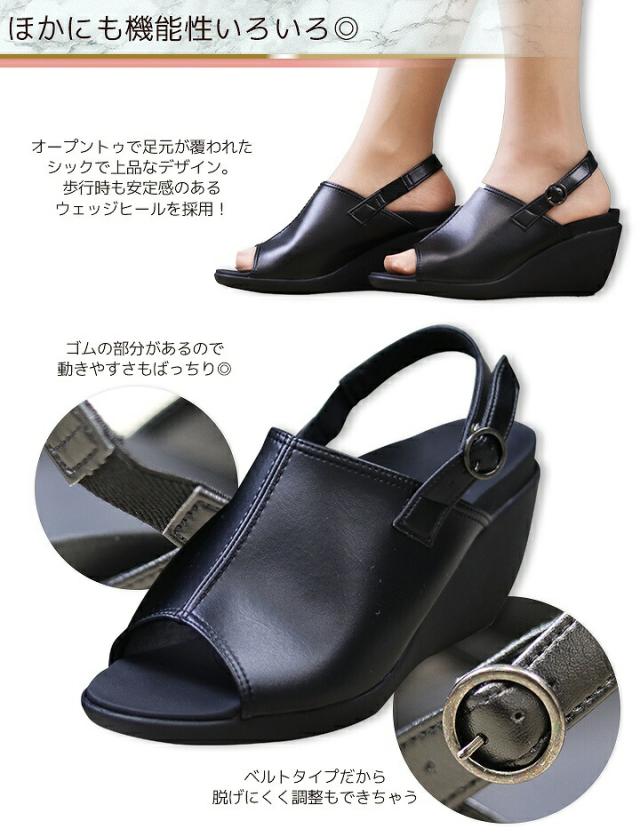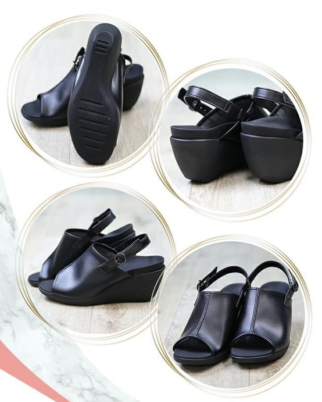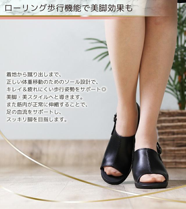 リゲッタ サンダル ストラップサンダル 医療用 靴 病院 クリニック オフィス Regeta オープントゥウェッジサンダル 痛くない 疲れにくい 歩きやすい ブラック事務 黒 軽量 靴 オフィス RW-1004 オフィス Regeta 日本製