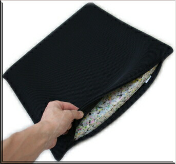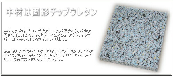 中身は様々な種類のウレタンを細かく粉砕して再形成した「固形チップウレタン」。