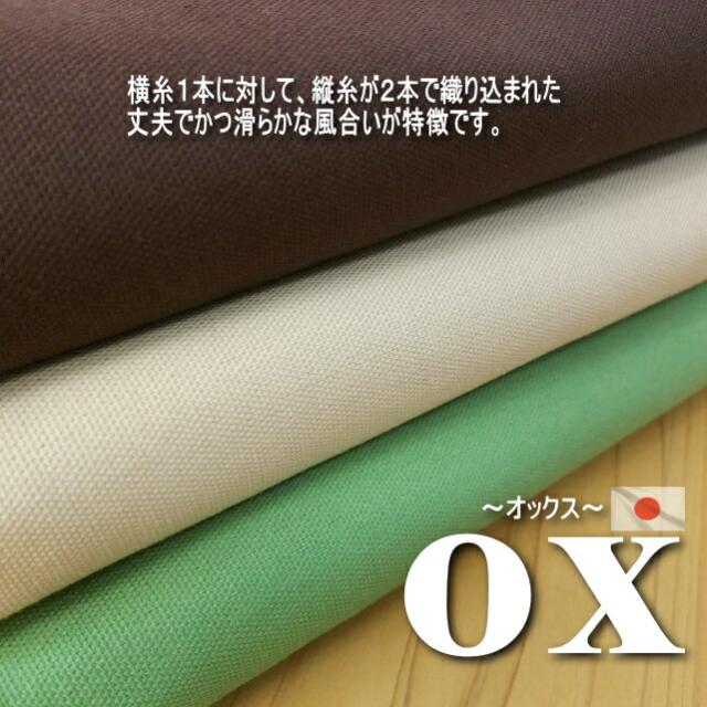 コットン100%、横糸1本に対し2本の縦糸で織り込まれた丈夫なオックス織り素材です。