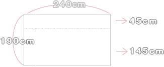 ↓こちらのマルチカバーは150cm巾の生地からできておりますので下記図の様に45cmと145cmを繋いで縫製してございます。