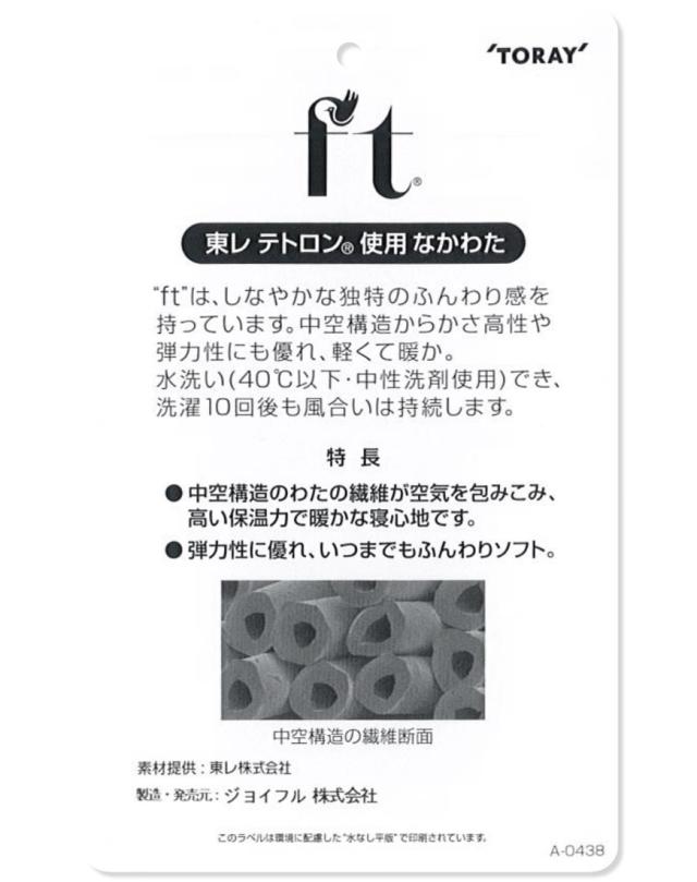 中わたには軽くて柔らかな東レ ft(R)を使用し、発送日の当日にわた入れ加工。さらに圧縮梱包でコンパクトに発送いたします。