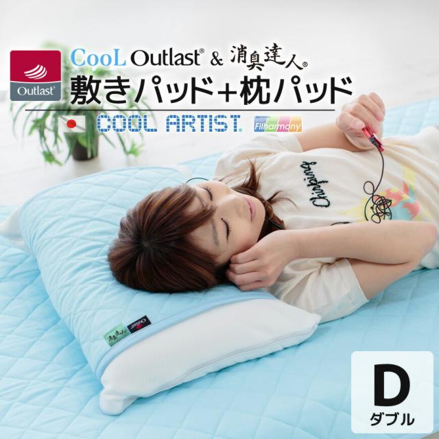 クール アウトラスト(R) & 消臭達人(R) 敷パッド+枕パッド2枚 ダブル 約140×205cm 日本製 送料無料 敷きパッド CooLArtist(R) クールアーティスト(R) CooL Outlast(R) 涼感 温度調整 ひんやり 抗菌 防臭 防ダニ 冷却 高級 父の日