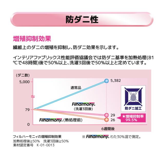 ・汗を吸ってさらさら感をキープし、抗菌防臭・防ダニの衛生的な中わた素材フィルハーモニィ®