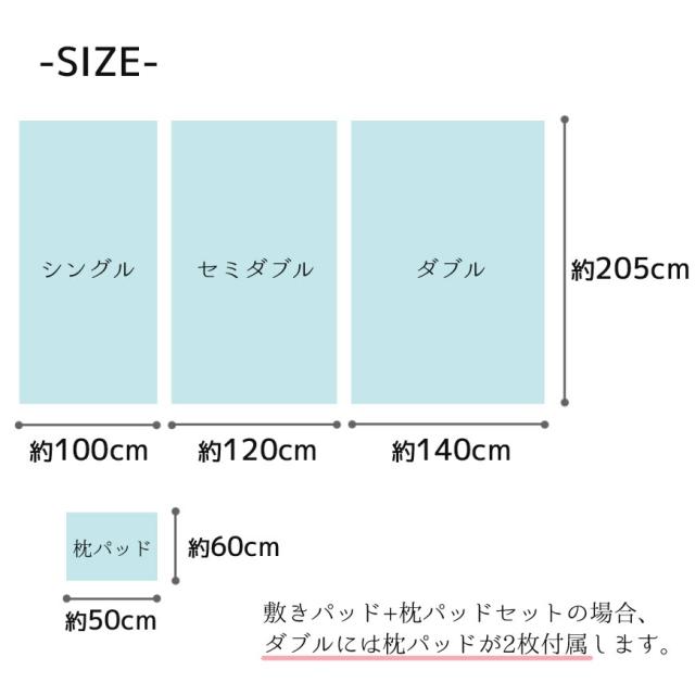 ※こちらダブルサイズの敷きパッド1枚+枕パッド2枚のセット販売です。