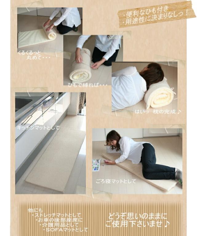 薄めの厚さ3mmが使いやすく、キッチンマットやストレッチ・ヨガマットとして、またソファーマット・お車の後部座(リアシート)、介護用品としてもOK!