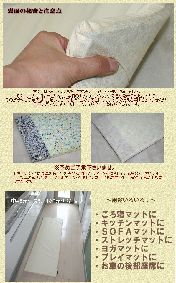 キッチンマット・ソファーマット・お車の後部座(リアシート)にも,まだまだ他にもアイデア次第で用途も様々なのが“フリー=自由”クッションです!