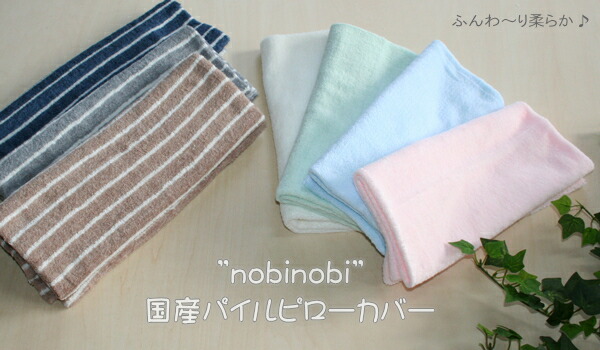 日本製 パイル 枕カバー NOBINOBI うっとりする触り心地 コットン タオル地 のびる 洗える ふんわり やわらか ピローケース 替えカバー のびのび 伸縮生地 無地 ボーダー ストライプ シャーベットカラー 春 夏 新生活