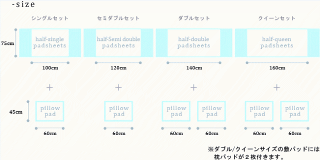 ※こちらハーフクイーン160×75cm 1枚と枕パッド60×45cm 2枚のセットになります。