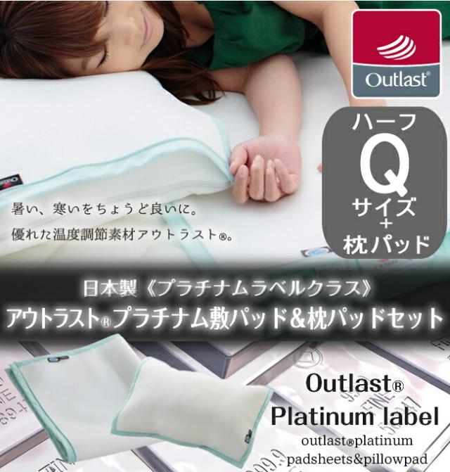 アウトラスト(R) プラチナム 敷パッド(ハーフ クイーン)160×75cm 1枚+ 枕パッド 60×45cm 2枚 敷パット OUTLAST 涼感 温度調整 ひんやり マット 寝具 クール 冷却 快適温度 NASA 国産 日本製 高級 ピロケース 枕カバー おうち時間