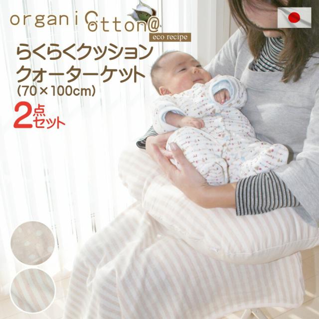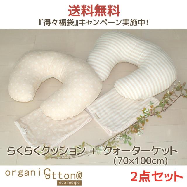 オーガニックコットン・ダブルガーゼ “らくらくクッション”と“クォーターケット70x100cm”の2点セットで割安 妊婦 マタンティー 送料無料 福袋 ECOレシピ 授乳クッション 授乳 クッション ひざ掛け 出産祝い ギフト 贈り物 ベビー 赤ちゃん 新しい生活様式
