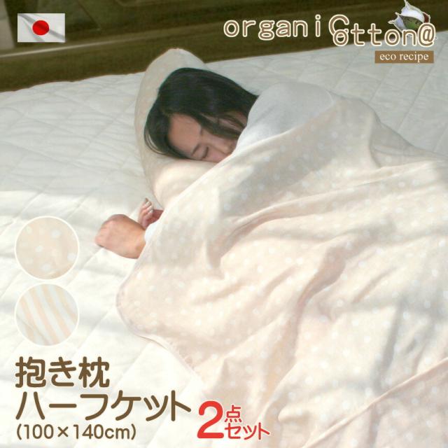 オーガニックコットン ダブルガーゼ 抱き枕 ハーフケット 100×140cm 2点セット 割安 圧縮梱包 真空パック仕様 国産 送料無料 抱きまくら だきまくら 東レ ft(R) わた 出産祝い 肌掛け布団 プレゼント マルチピロー 妊婦 マタニティー ギフト 福袋 贈り物 日本製