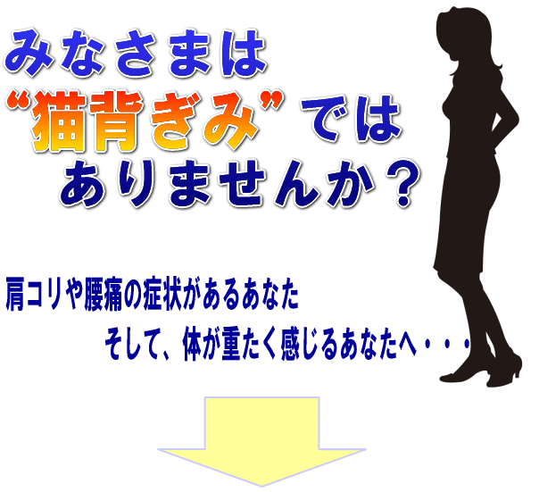 最近猫背ぎみだと感じる、首や肩こりや腰痛、体が重たく感じるあなたへ…