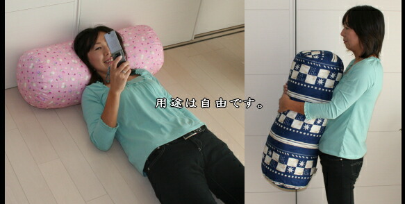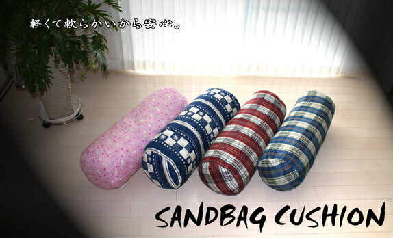 在庫限り 円柱型 サンドバッグ型 クッション わた入り 圧縮梱包 真空パック 日本製 青 国産 東レ ft(R) テトロン(R) TORAY 市松 ブロックチェック ゴロ寝枕 ごろ寝枕 抱きまくら だきまくら ごっつんこ防止 新しい生活様式 おうち時間