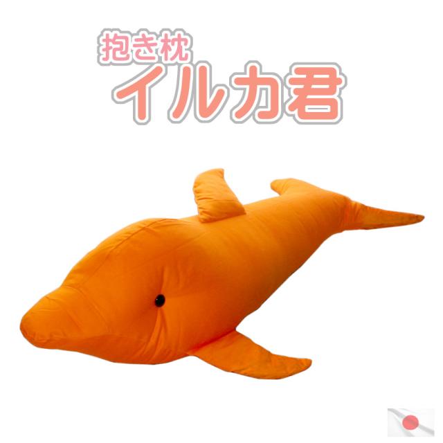 抱き枕 イルカ君 発送日当日 わた入れ加工でふ〜っかふか オレンジ色 在庫限り【 いるか クッション 抱きまくら ダキマクラ イルカ ドルフィン だきまくら 国産 日本製 ぬいぐるみ 魚 動物 アニマル 】