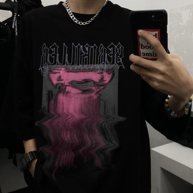 Tシャツ レディース 半袖 シャツ ストリート系 個性的 トップス メンズ グラフィックデザイン 黒 カジュアル ルーズ