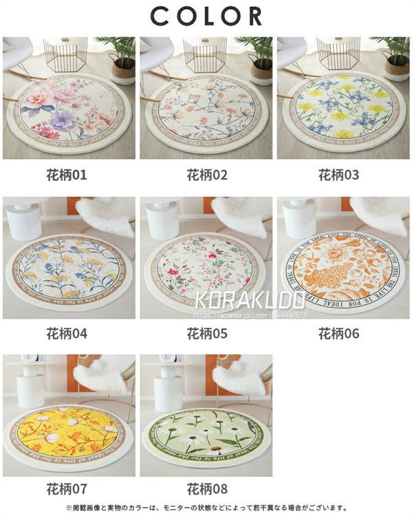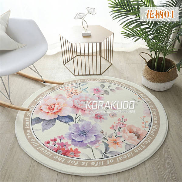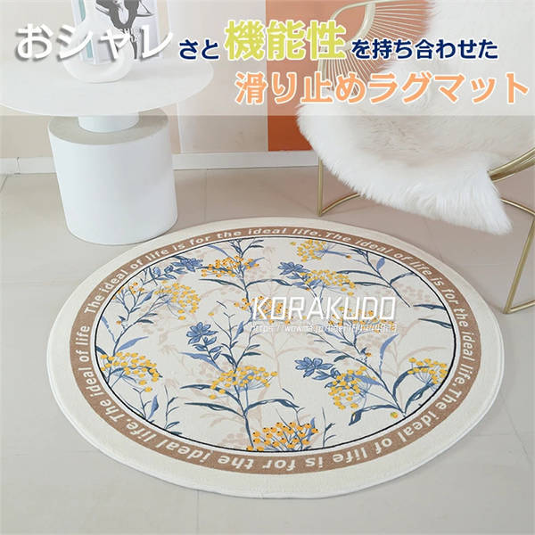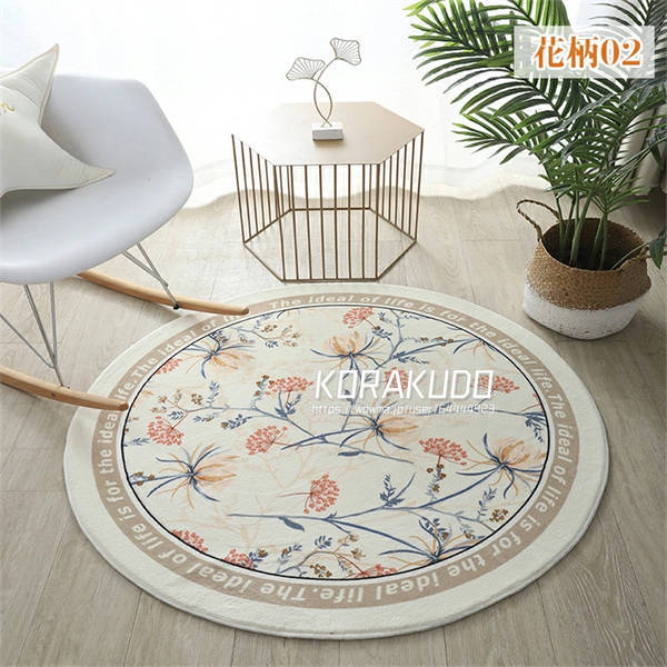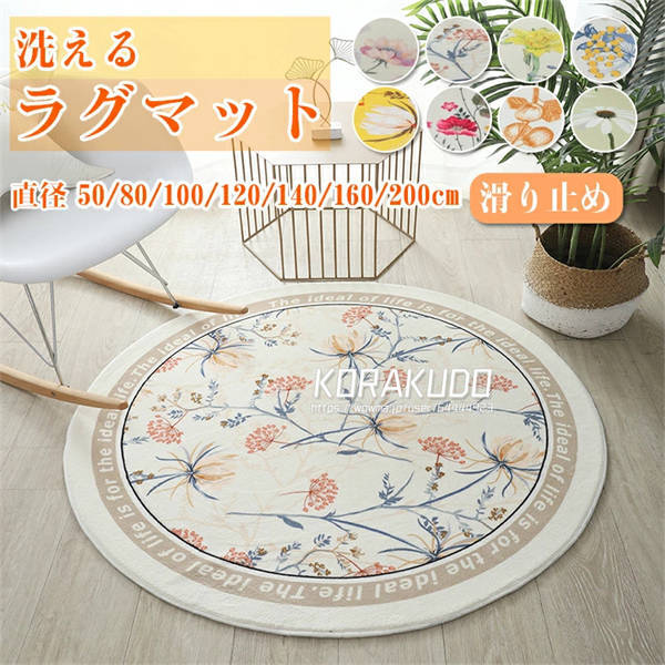 ラグマット ラグ 直径50CM 北欧 円形 大判 洗える 滑り止め付 丸型 マット デスクマット ふわふわ 可愛い カーペット 丸いラグ 円型ラグ 絨毯 花柄 フラワー オールシーズン ウォッシャブル サンゴフリース 春夏秋冬 子供部屋