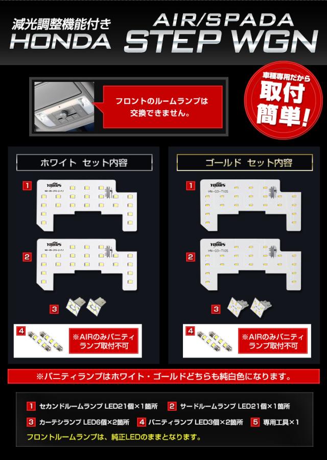 [対象商品タイムセール10%OFF]ステップワゴン LED ルームランプ セット エアー スパーダ RP6/RP7/RP8 専用設計 室内灯 専用設計 明るさ調整 専用工具付 ホンダ HONDA STEPWGN AIR SPADA