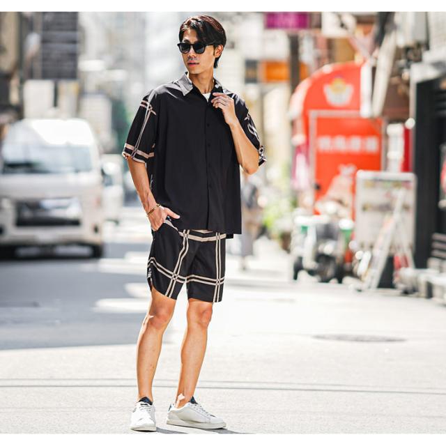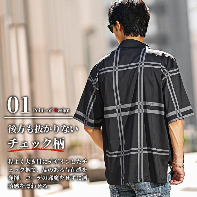 半袖シャツ メンズ ブランド オーバーサイズ シャツ メンズ 半袖 チェック柄 ビッグシャツ 薄手 レトロ 柄シャツ 5分袖 チェックシャツ ベージュ グレー 夏 夏物 夏服 大きいサイズ メンズファッション リゾート サーフ系 ちょいワル お兄系