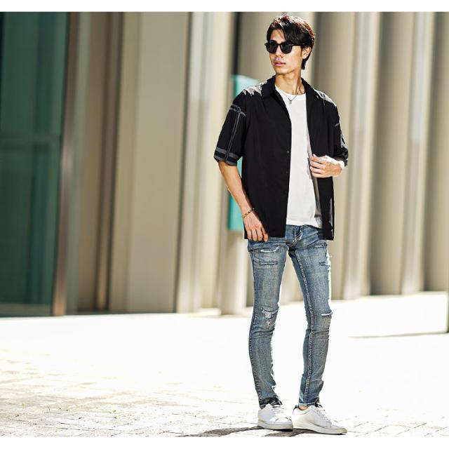 ややビッグな半袖シャツ。