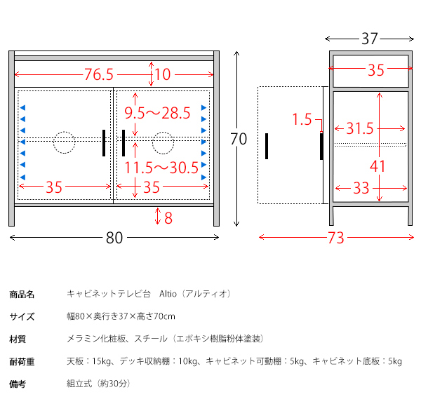 W80×D37×H70cm