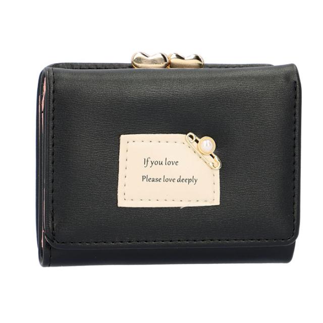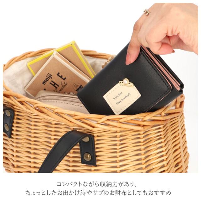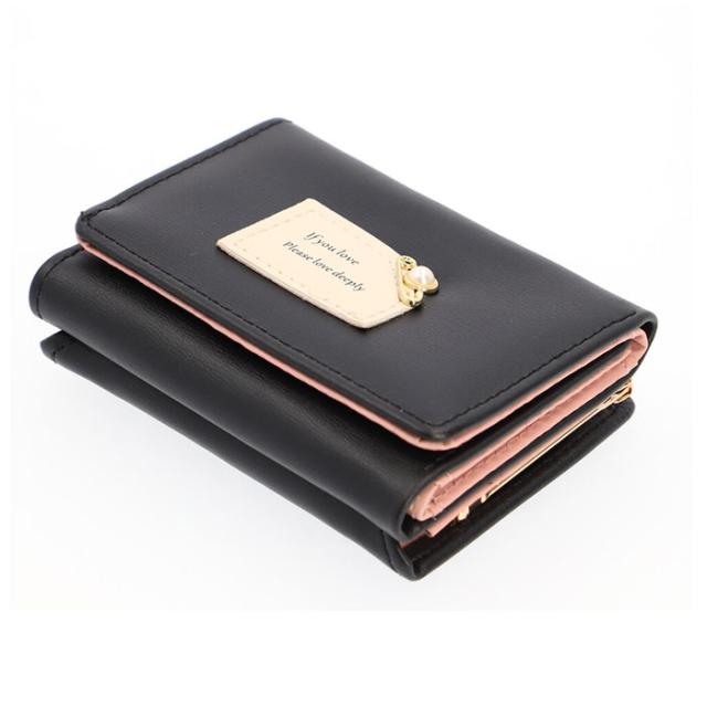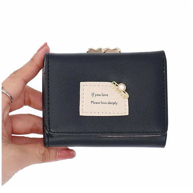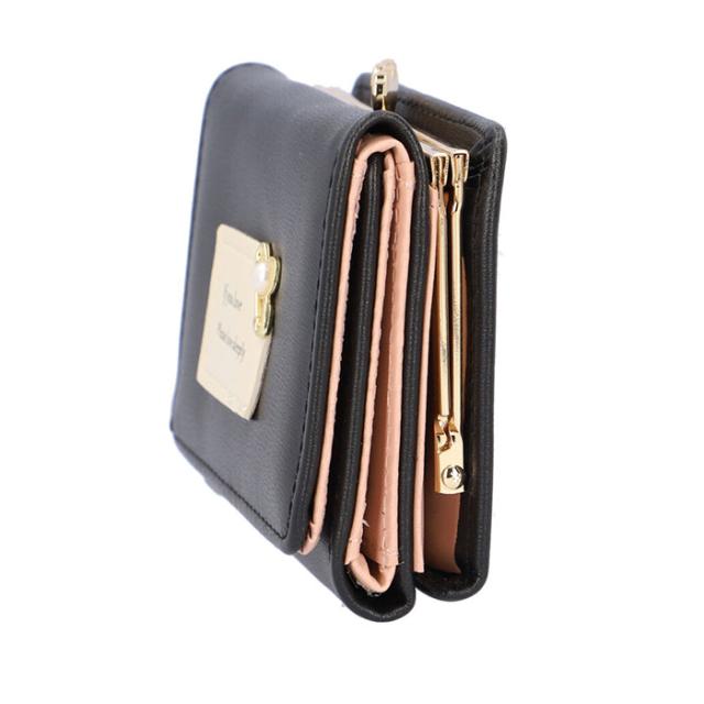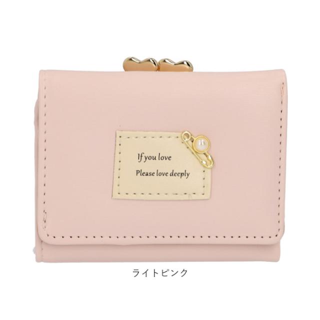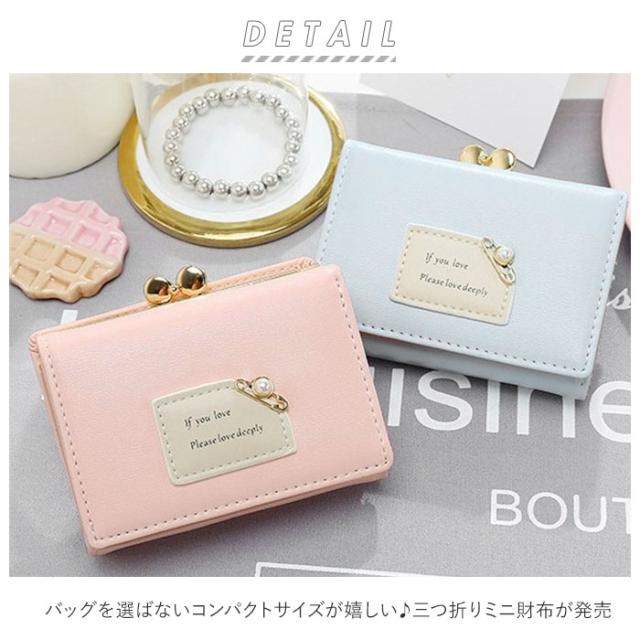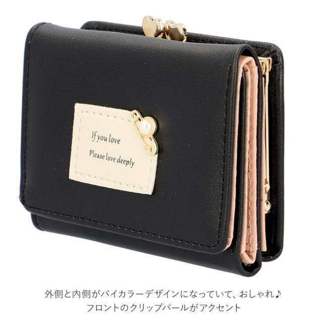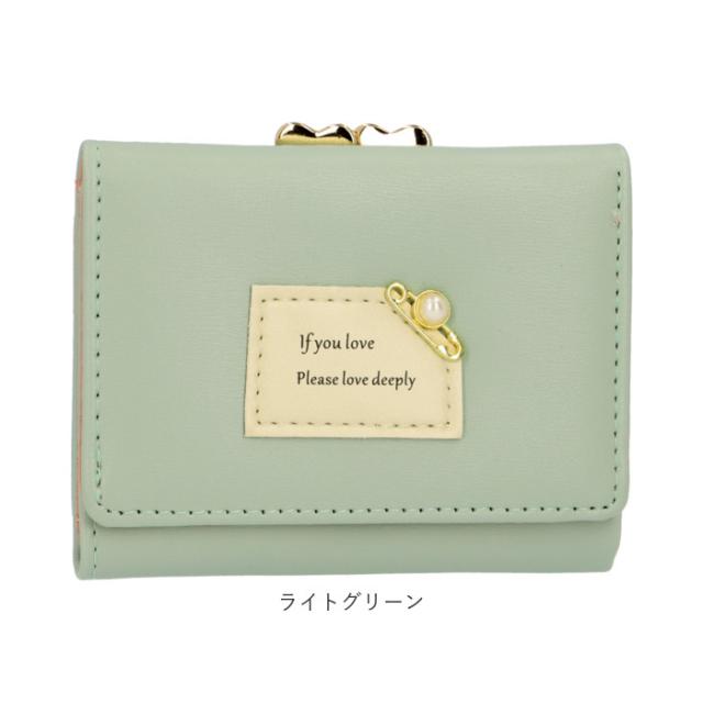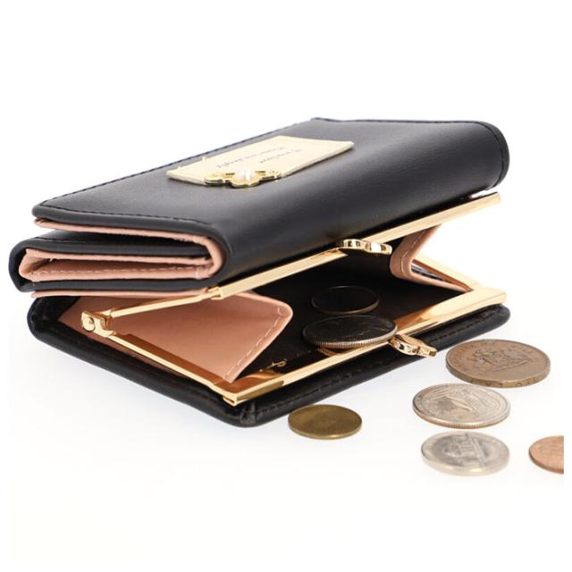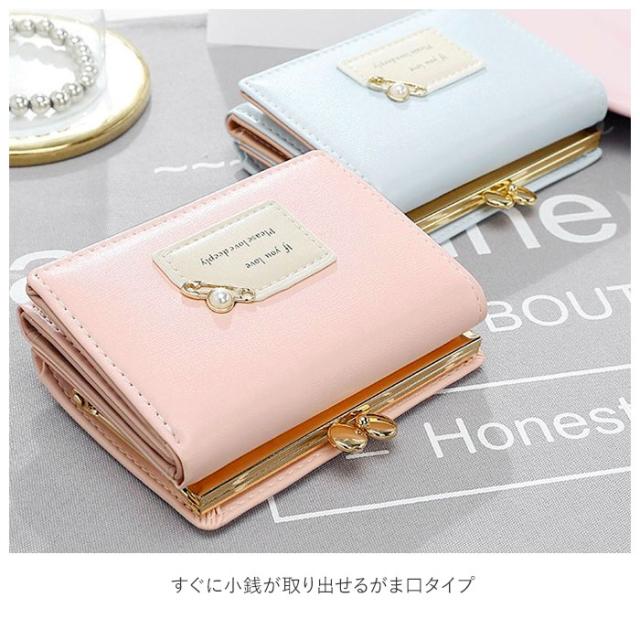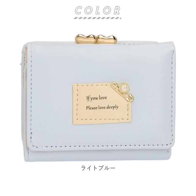 三つ折り財布 レディース がま口 通販 ミニ財布 三つ折り 小銭入れ ミニウォレット 小さい 財布 ウォレット 合成革 おしゃれ かわいい 女性用 安全ピン パール ブラック ブルー