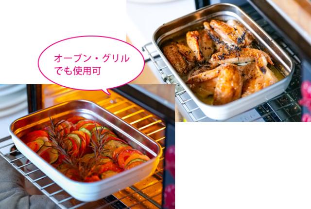 ステンレスなのに電子レンジ・オーブンOK!