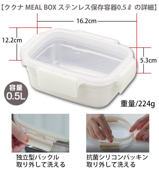 ククナ ミールボックス 500ml フードコンテナ 調理容器 お弁当箱オーブン グリル 電子レンジ対応 食品 食洗機対応 ステンレス 角型 スタッキング 蓋 フタ 冷凍 冷蔵 つくりおき