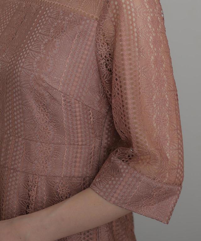 レースの五分丈の袖はさり気なく二の腕部分をカバーしてくれます。