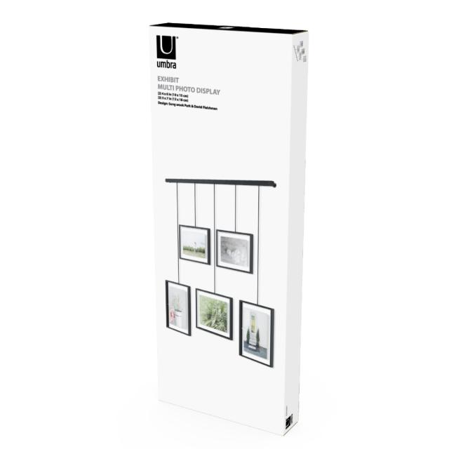 壁に複数のフレームを美しく取り付けるのは面倒ですが、イグジビットなら、一度に5個のフレームをディスプレイすることができます。