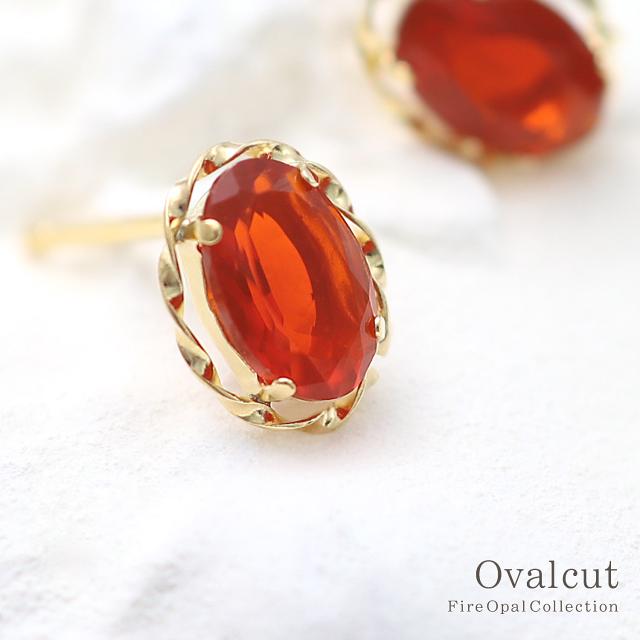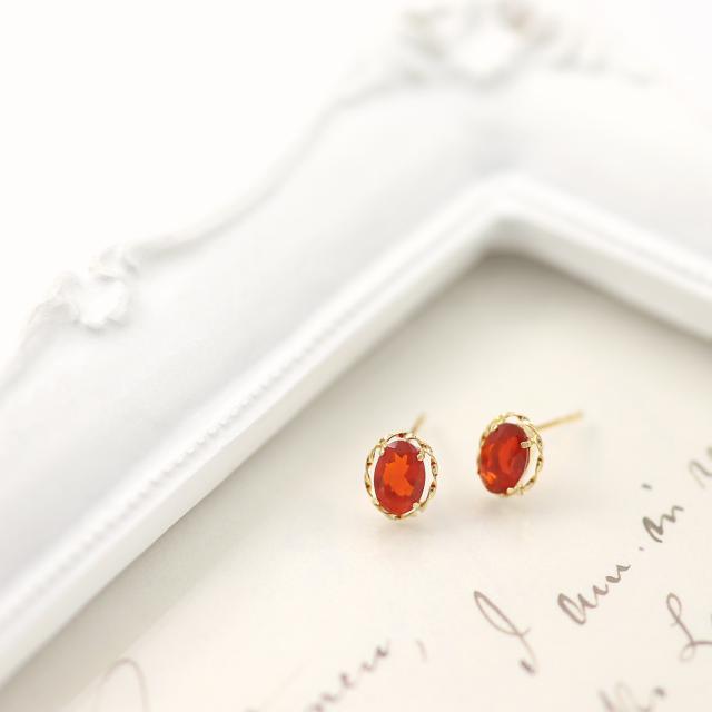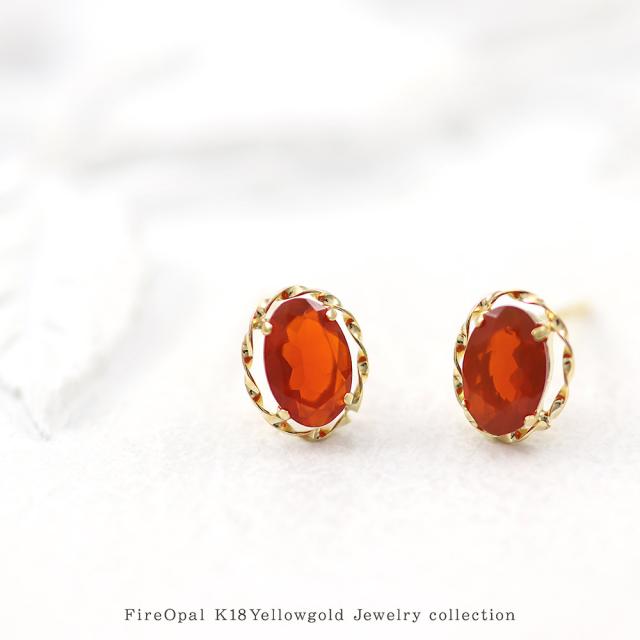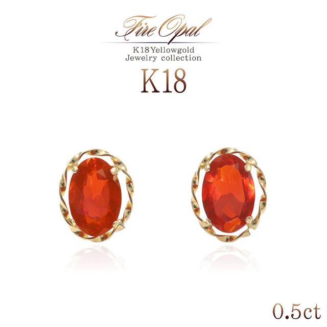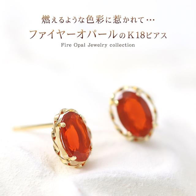 | 地金・素材 | ・ファイヤーオパール (メキシコ産) トータル0.5ct オーバルカット ・地金:K18YG(18金イエローゴールド) ・ダブルロック キャッチ ※刻印箇所等は画像と異なる場合がございます。 |