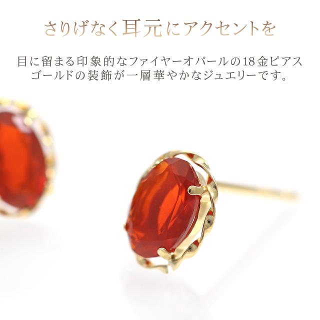 ファイヤーオパール ピアス 18金 イエローゴールド 18K K18 レディース シンプル 宝石 10月 誕生石 オパール スタッドピアス 小ぶり プレゼント 記念日 誕生日 贈り物 お祝い ギフト 小さめ 小振り オレンジ 20代 30代 40代 彼女 嫁 娘 ホワイトデー お返し